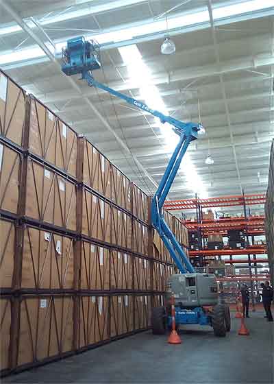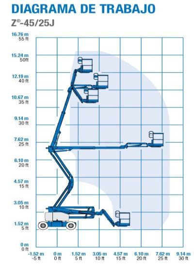 La plataforma articulada eléctrica Genie® Z®-45/25J DC ofrece un funcionamiento silencioso y libre de emisiones. Con esta plataforma eléctrica Genie, los operarios pueden trabajar junto a edificios o alrededor de obstáculos, y acceder a trabajos por encima de la cabeza en pasillos y espacios congestionados.